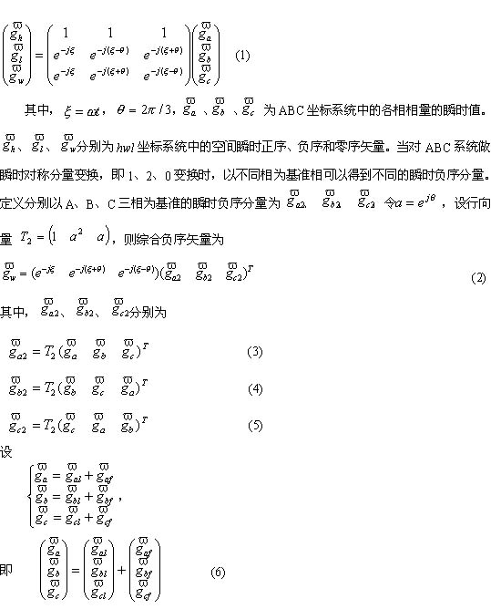 通常的ABC系統(tǒng)是時域中的相量坐標系統(tǒng)。綜合負序矢量是構(gòu)成空間矢量坐標系統(tǒng)的空間分量。綜合矢量與ABC系統(tǒng)的聯(lián)系如下[4][5]: