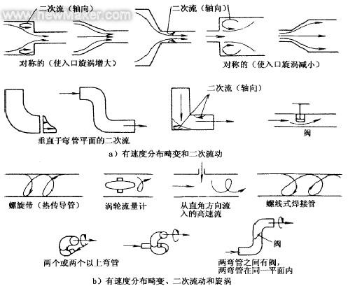 圖1 根據(jù)擾動(dòng)流類型分類的各種管件