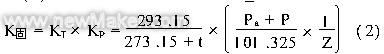 當(dāng)無溫度、壓力自動(dòng)補(bǔ)償裝置和壓力記錄儀時(shí),并在使用壓力波動(dòng)不大時(shí),可根據(jù)各地區(qū)大氣壓不同(北京為101.32kPa,重慶為98.32kPa,上海為101.61kPa,拉薩為65.18kPa)和溫度不同制定出當(dāng)?shù)剡m用的固定人工修正系數(shù)K固參考表。