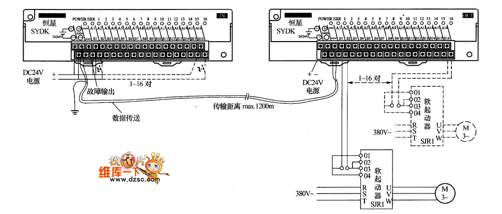 變頻器有面板操作和外部端子控制兩種方法,在面板操作時(shí),多數(shù)情況,面板就在變頻器的正面的蓋上,它是可拆卸的。也可把面板拆離變頻器5~10m進(jìn)行操作,但距離過(guò)長(zhǎng)就不合適了,通常的辦法是采用延長(zhǎng)的扁線。在外部端子控制時(shí),開(kāi)關(guān)量I/0,可離變頻器更遠(yuǎn)些,但也不能超過(guò)50m,否則會(huì)出現(xiàn)干擾現(xiàn)象,難以處理?傊痪湓,變頻器不適宜過(guò)長(zhǎng)距離的直接操作。但實(shí)際使用時(shí),往往有長(zhǎng)距離遙控的需要,例如礦井、化工廠、防爆場(chǎng)所,集中控制時(shí),現(xiàn)場(chǎng)有特高溫、特潮濕、有害氣體及嚴(yán)重腐蝕性介質(zhì)的環(huán)境下,就必須使用遙控操作。這里向大家介紹的是一種較為合適的,I/0開(kāi)關(guān)量遙控距離可達(dá)1200m距離,只需兩根導(dǎo)線傳輸?shù)南冗M(jìn)設(shè)備,最多可達(dá)16個(gè)接點(diǎn),供變頻器使用,它不存在干擾、衰減、布線量大等各種不利因素,值得向大家推薦采用。