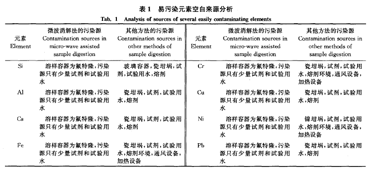 微波消解與常規(guī)消解空白來(lái)源比較見表1。