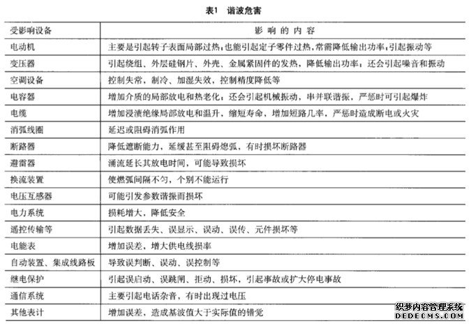 3UPS諧波的危害(見表1)