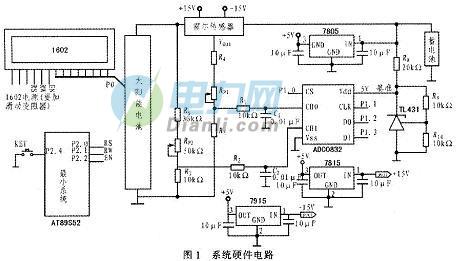 傳感器,需±15V雙電源供電,同樣采用系統(tǒng)內(nèi)的蓄電池供電.經(jīng)穩(wěn)壓集成塊7805、7915穩(wěn)壓在±15V,從而驅(qū)動(dòng)其工作。
