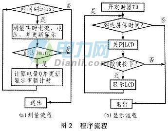 系統(tǒng)軟件設(shè)計(jì)主要由單片機(jī)完成,主要實(shí)現(xiàn)數(shù)據(jù)采集和控制顯示,整個(gè)軟件系統(tǒng)設(shè)計(jì)采用模塊化思想,其丈量和顯示程序流程如圖2所示。